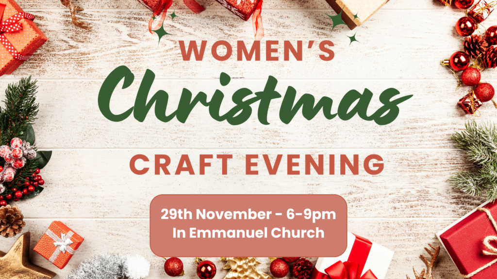 On Saturday 29th November we are holding a Women’s Christmas Craft Evening in the Church. This will be a great evening full of making crafts, a wreath, drinking mulled wine and eating yummy Christmassy nibbles!